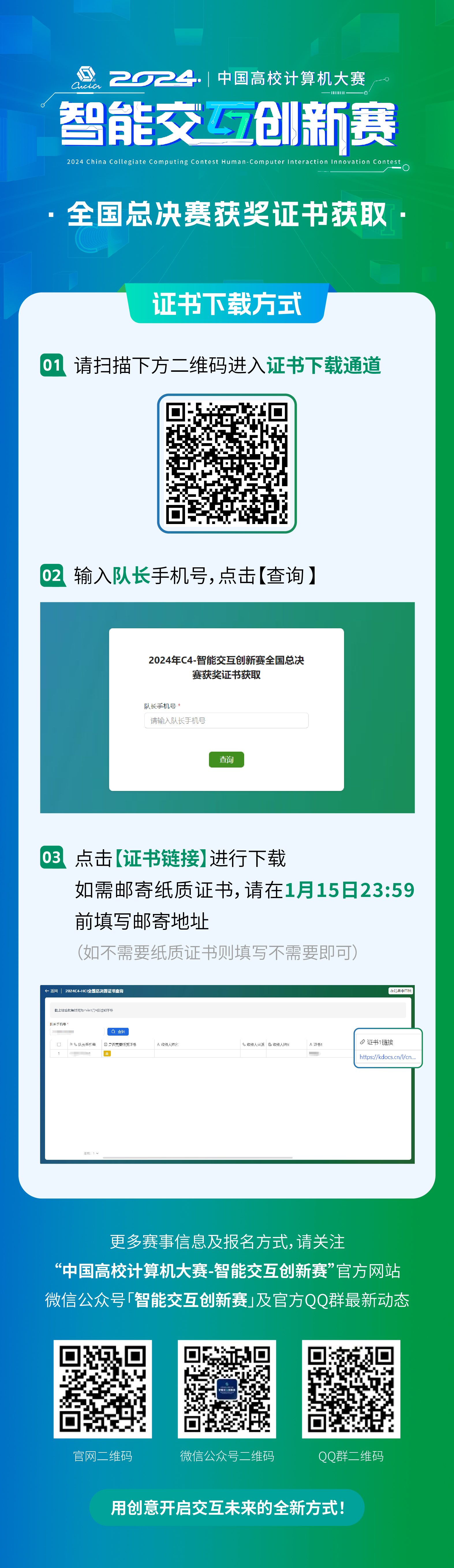 通知|2024年中国高校计算机大赛-智能交互创新赛全国总决赛获奖证书获取