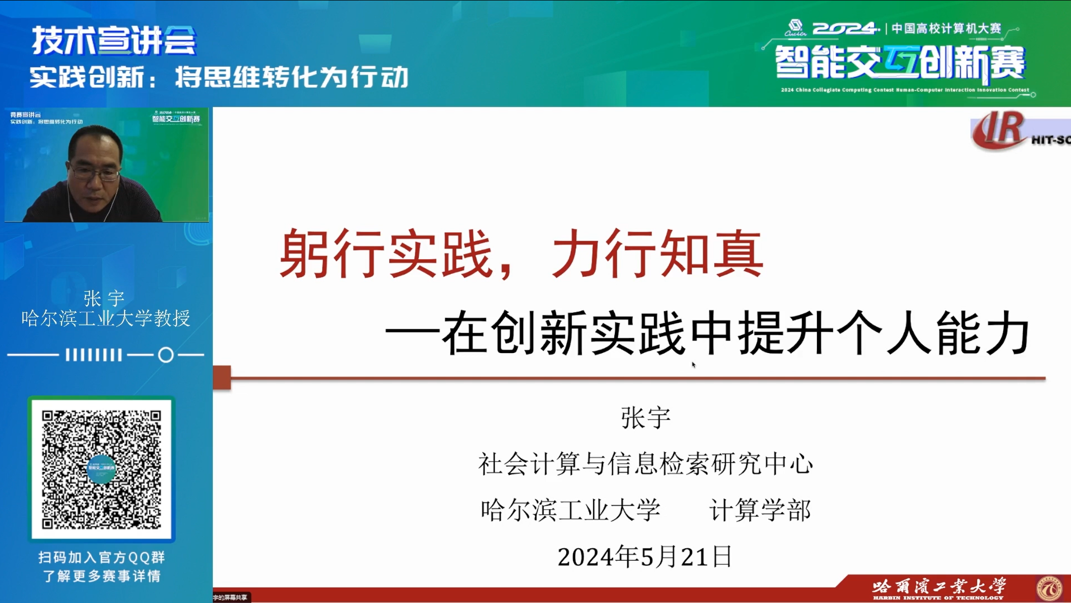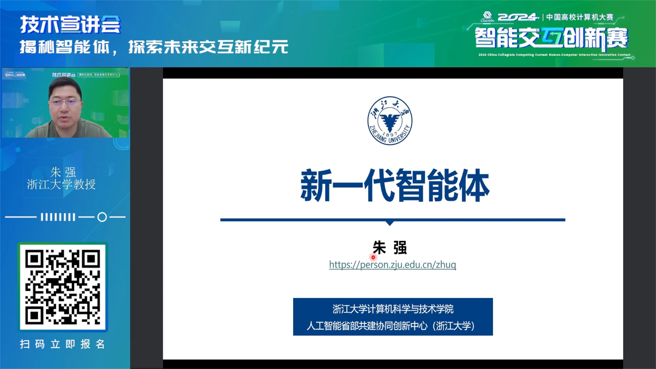 朱强教授对大赛的宗旨和意义进行了阐述,强调了智能交互技术在推动社会进步中的重要作用,并鼓励学生们积极参与到这一创新领域中来。